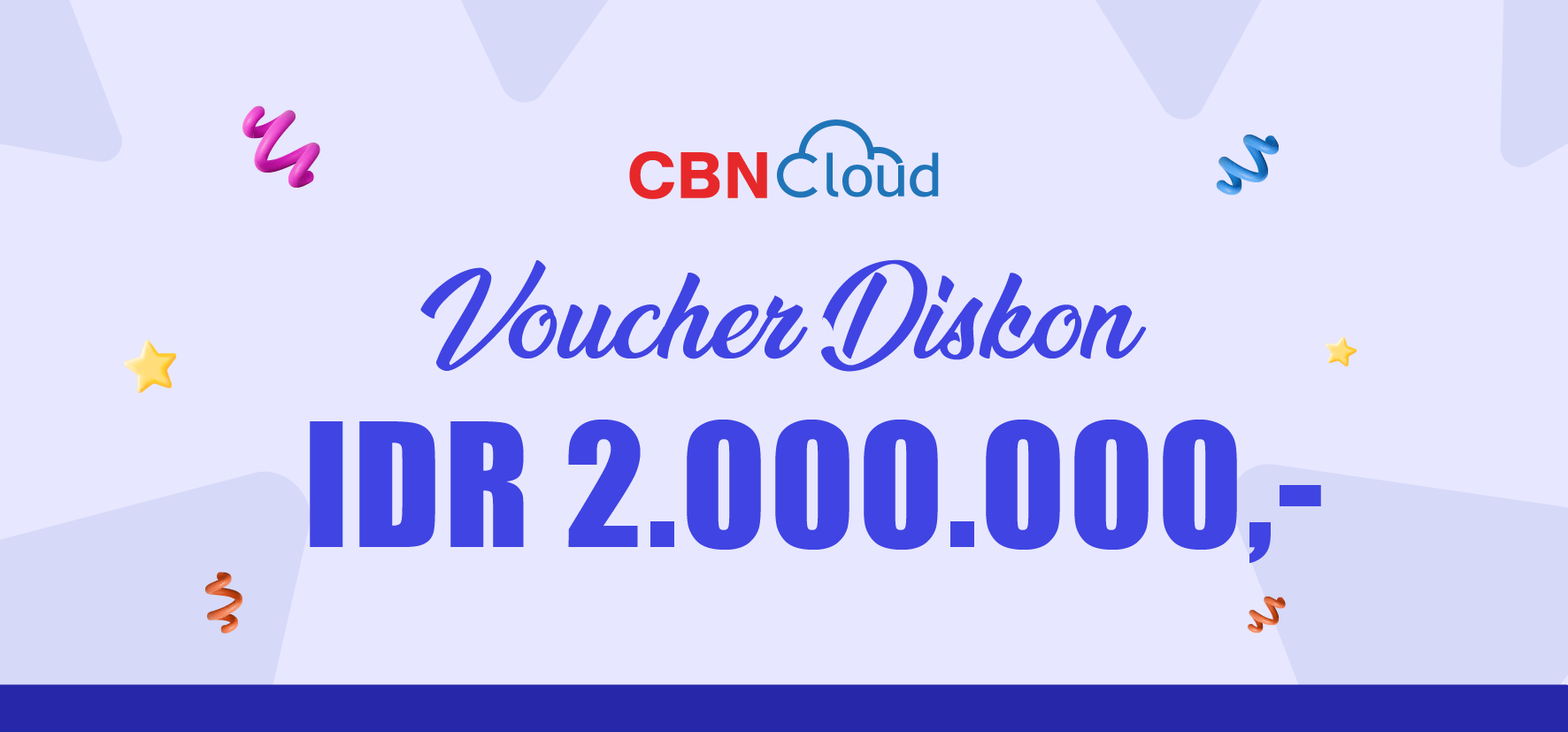 Nikmati Discount Voucher senilai IDR 2.000.000 untuk mendukung kebutuhan transformasi digital bisnis Anda bersama CBNCloud. Voucher ini dapat digunakan untuk berbagai produk dan layanan cloud CBNCloud—tanpa minimum pembelian.